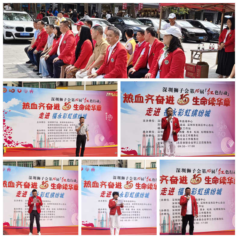 春意盎然润鹏城,无偿献血递温情。2026 年 3 月 29 日,深圳狮子会第 16 届「红色行动」走进白石厦社区公益献血活动,在福永白石厦社区石厦名苑一楼停车场温情启幕。本次活动由深圳狮子会泊爱服务队牵头,联合鹏爱、西乡、松明、松岗服务队共同举办,汇聚各界爱心力量,以无偿献血践行公益使命,全力缓解深圳血液库存紧缺现状。