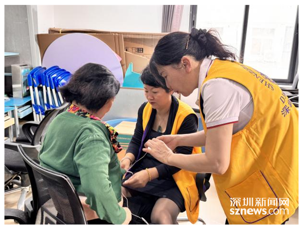 当天下午,狮友们身着黄马甲在梧桐山社区党群服务中心开展“心的守护”公益活动,通过健康宣教、社区关怀等服务传递温暖。活动聚焦中老年群体心血管健康,通过健康讲座、前沿心电检测及远程专家诊断等系列服务,为居民送上专属心脏健康守护,吸引了50余名社区居民积极参与。
